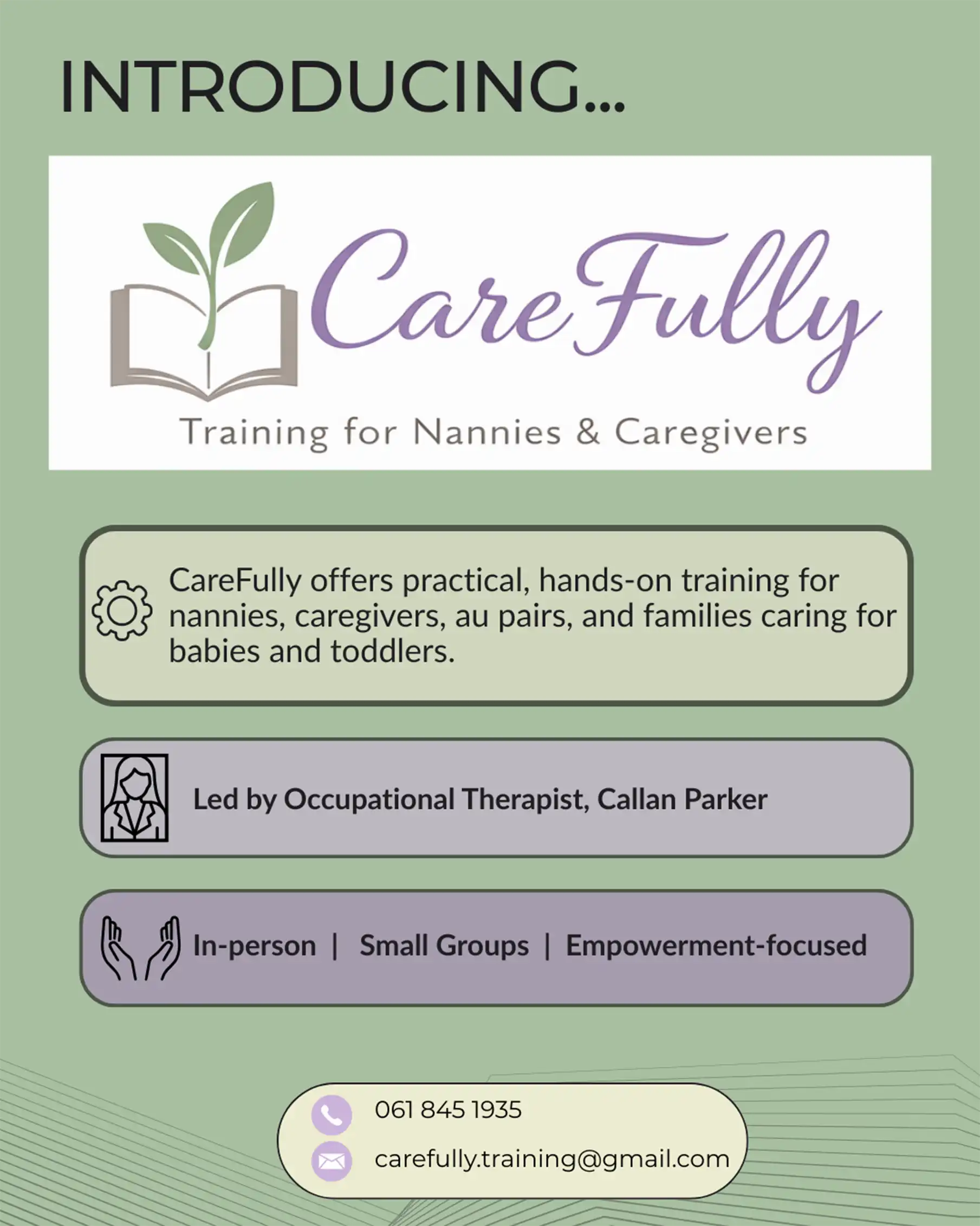 CareFully Register To register for the upcoming training course.Please email:carefully.training@gmail.comPhone:061 845 1935